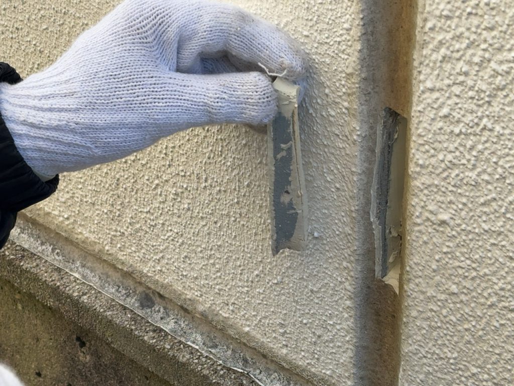 今後予定している大規模修繕工事の事前調査で「シーリング調査」を行いました。2カ所採取で、片方は既存のシールが撤去されず上から新しいシーリングが施工されていました。いわゆる「増打」です。もう1箇所は、旧シーリングが撤去され新規にシールが施工されておりました。やはりコンサルタント(第3者)の目が必要と再認識させられました。