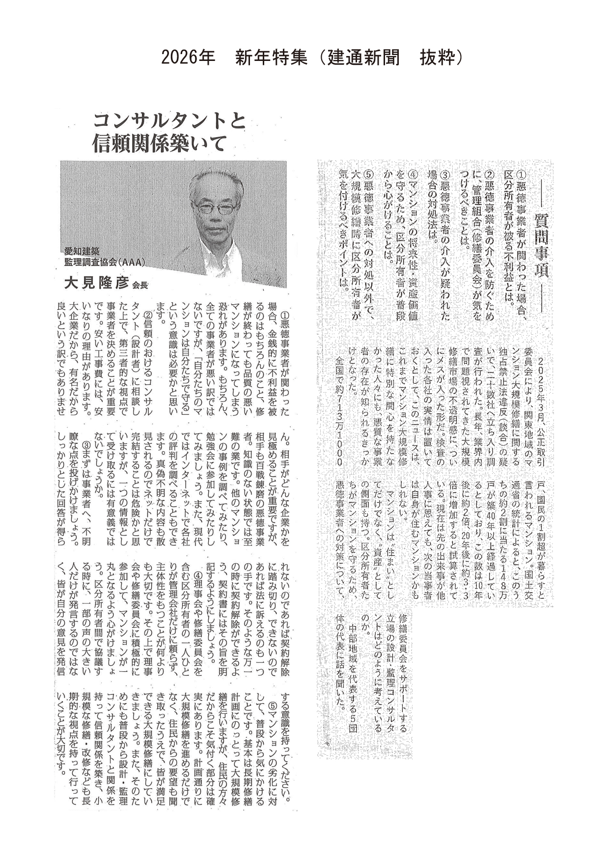新年の挨拶に代えて建通新聞の新年特集(抜粋)を掲載します。